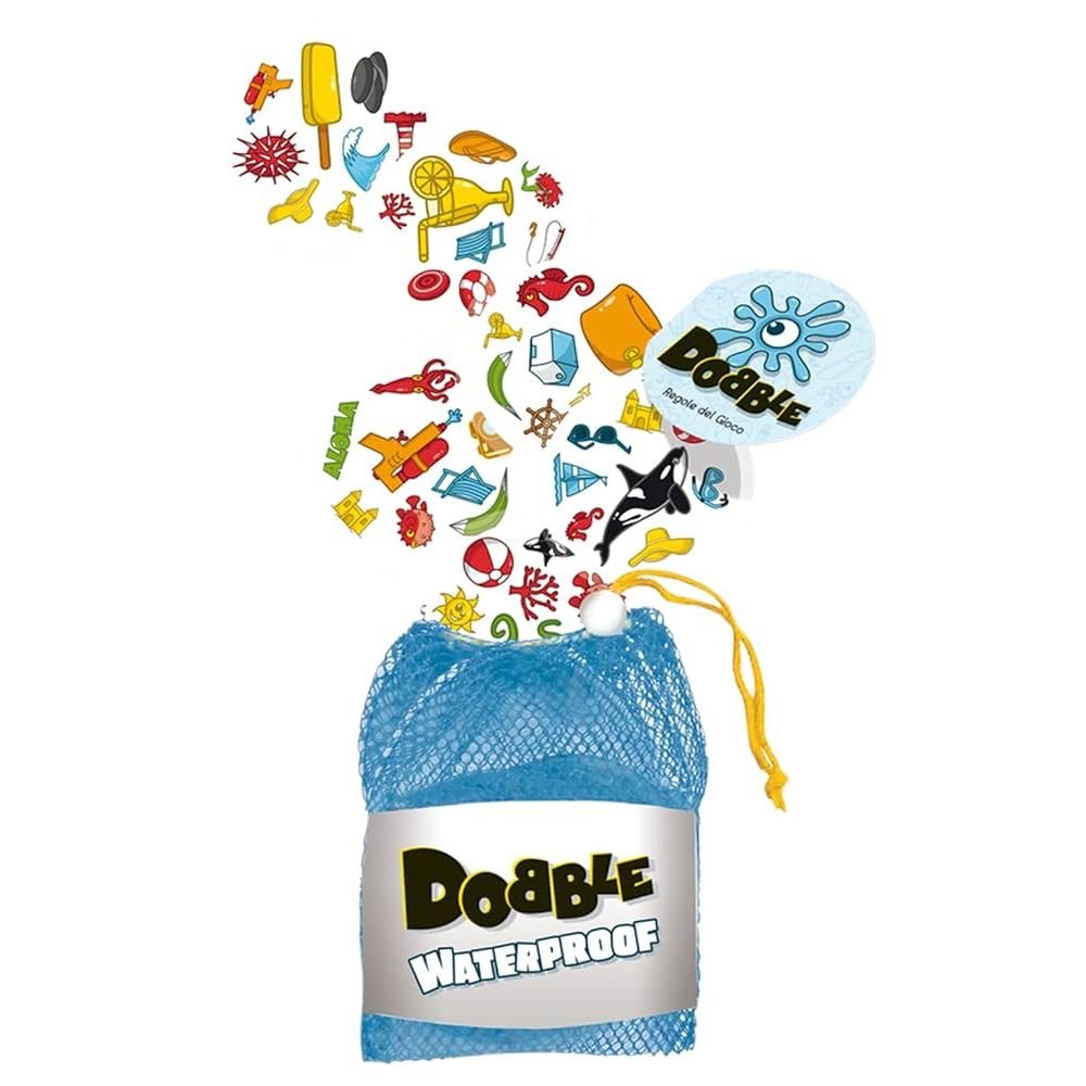 El clásico juego de observación y velocidad ahora en su versión impermeable para que la diversión no se detenga en la playa o la piscina. Con más de 50 símbolos distribuidos en 55 cartas, el reto es simple pero adictivo: encuentra el único símbolo idéntico entre dos cartas cualquiera, nómbralo en voz alta y gana. Las cartas resistentes al agua y su práctica bolsa de transporte hacen que puedas llevarlo a cualquier aventura veraniega sin preocupaciones. Es un juego de observación, velocidad, reflejos, atención y concentración que incluye 5 mini-juegos diferentes para encadenar horas de diversión frenética y competitiva.