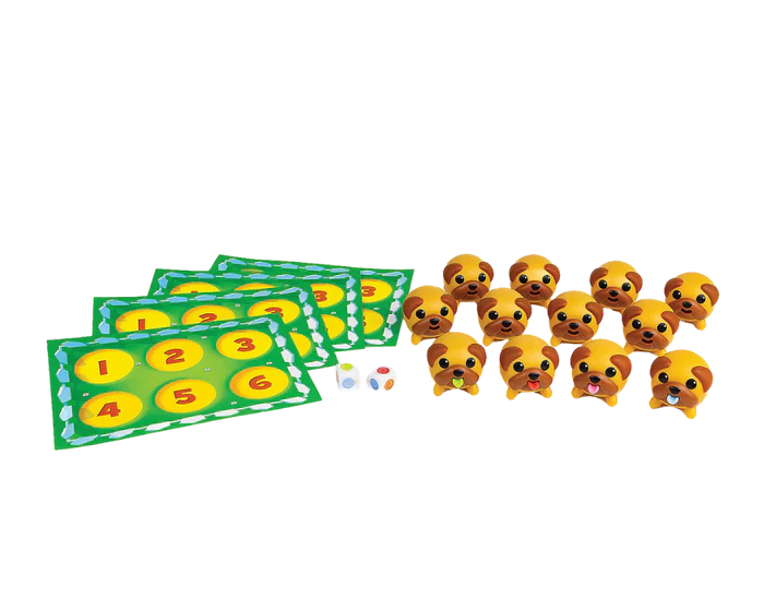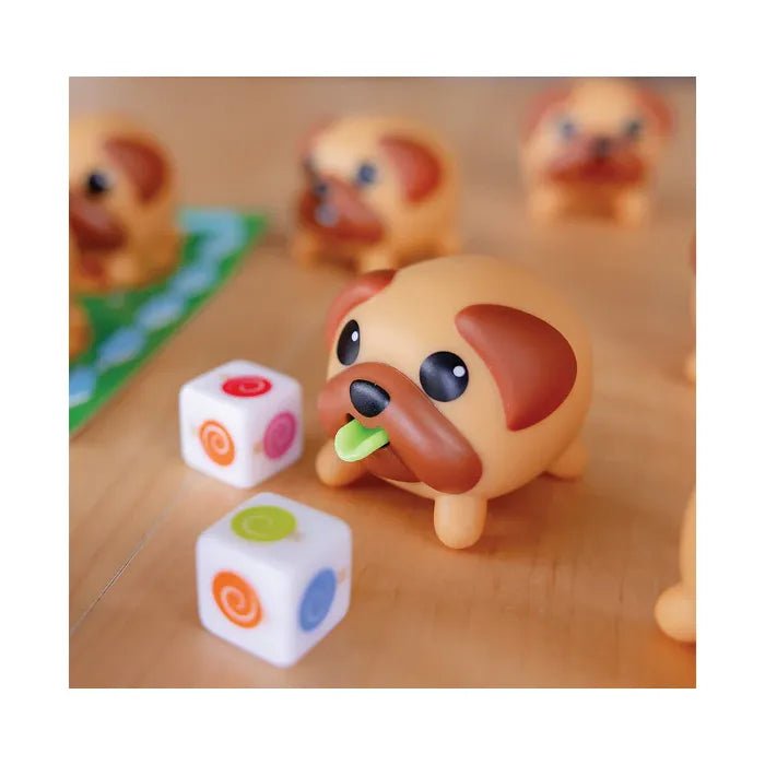 Los perritos se comieron todas las paletas… y sus lenguas quedaron teñidas del color de cada paleta 🍭🐶. En cada turno debes emparejar dos paletas del dado con dos cachorritos que creas que las han lamido. Cuando aprietas suavemente el perrito, ¡su lengua se asoma! El primero en conseguir emparejar 6 perritos con los colores correctos ¡gana la partida!