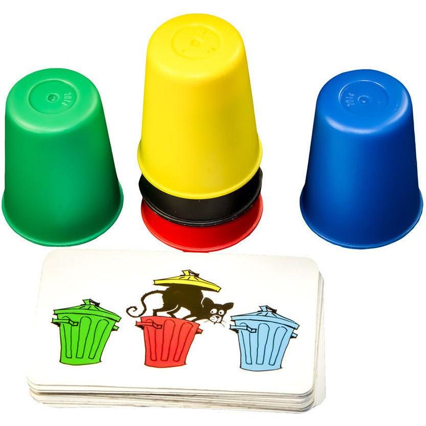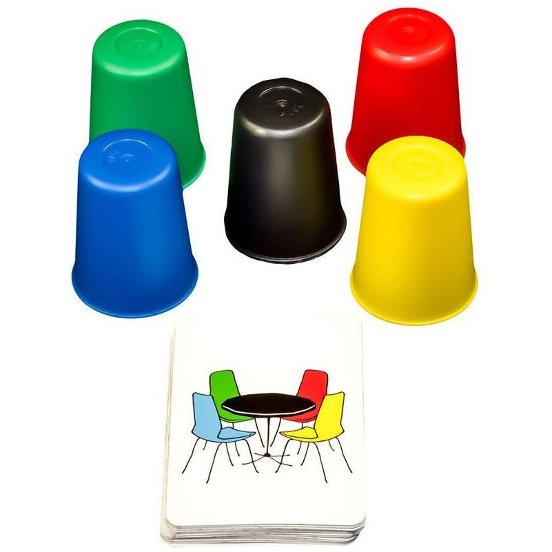 Speed Cups ahora mucho más extremo: las cartas muestran objetos que no están en línea… ¿La pelota está delante de la foca?, ¿los monos están sobre los elefantes? ¡Colócalos lo más rápido posible y corre a por la carta!