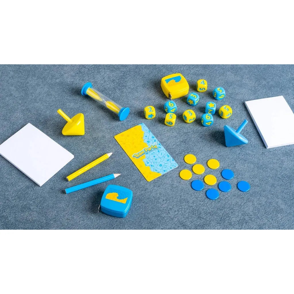 Un juego de retos por equipos donde las habilidades más absurdas se enfrentan a pruebas totalmente disparatadas. En Tema Party, los jugadores se dividen en dos equipos que competirán en distintos desafíos mientras uno de los jugadores lee la prueba y controla el tiempo. Las cartas proponen todo tipo de retos usando diferentes objetos y habilidades: dibujar, medir, equilibrar, adivinar o realizar acciones lo más rápido posible. El primer equipo que logre completar siete pruebas gana la partida. Es un juego caótico, activo y lleno de momentos divertidos donde lo importante es participar y reírse mientras intentas superar los desafíos.